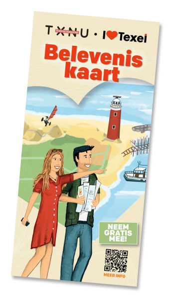 Met deze kaart in handen vind je allerlei unieke belevenissen op het eiland. De icoontjes op de plattegrond wijzen je de weg naar gezellige restaurants, winkels waar je je ogen uitkijkt en avontuurlijke uitjes. Veel plezier met het ontdekken van deze beleveniskaart. I LOVE Texel, en jij straks ook. Proef, beleef, geniet en laat je verrassen!